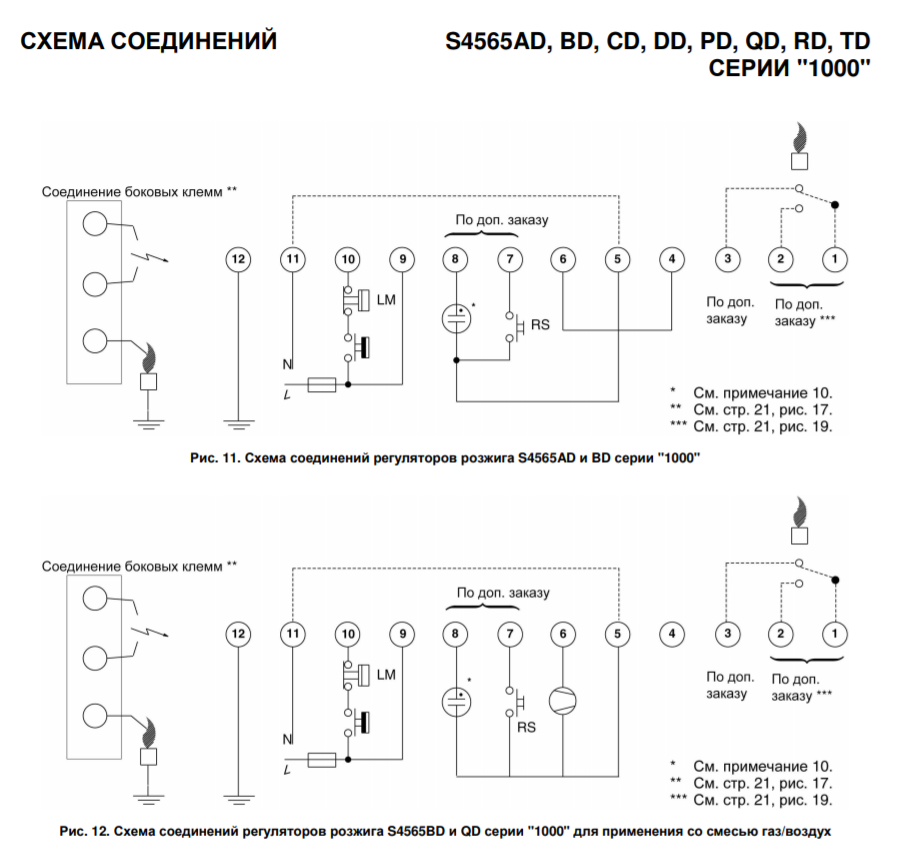 Регуляторы розжига серии S4565A на напряжение 220/240 В~ могут непосредственно включаться в электрическую цепь газового регулятора серии VK41...