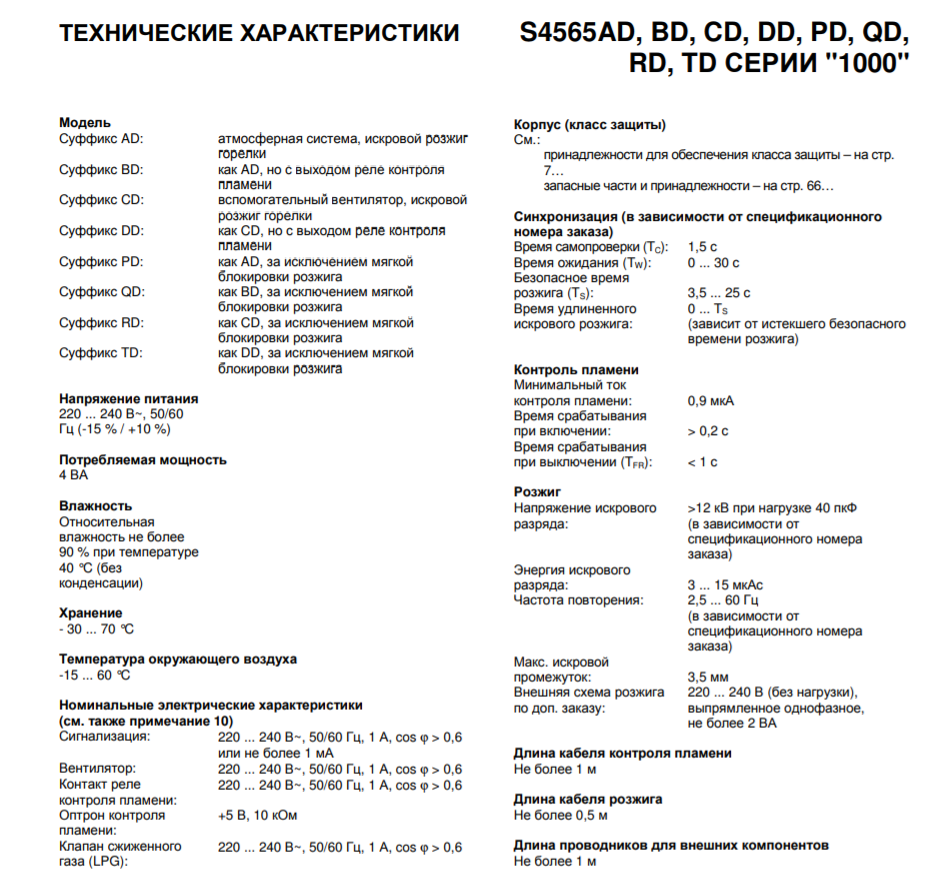 Регуляторы розжига S4565DD 1003не предназначены для непосредственного воздействия пламени. Контроллеры розжига серий S4565A обеспечивают отличные рабочие характеристики при высокой надежности. Предусмотрены модификации для различных систем розжига.