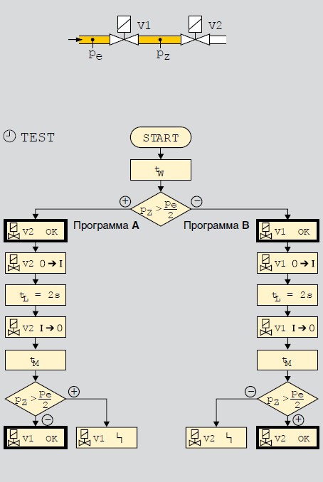 • Контроль герметичности двух и более электромагнитных клапанов.