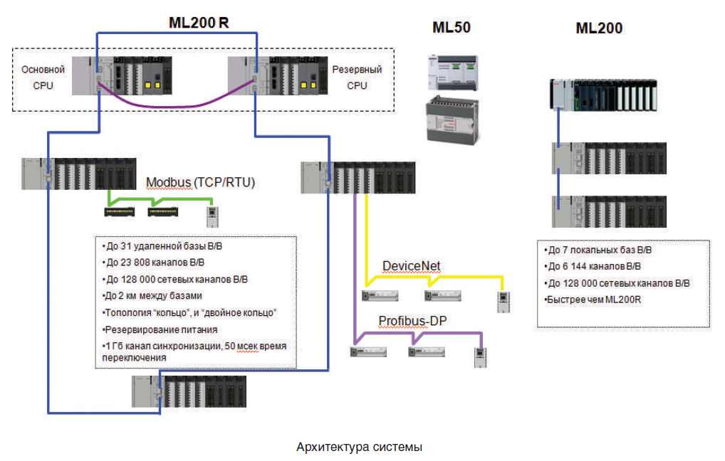 ПЛК серии ML200 — это мощный контроллер для приложений которые в которых резервирование компонентов (ЦПУ, блоки питания, связь между ЦПУ и стойками входов/выходов) не критично