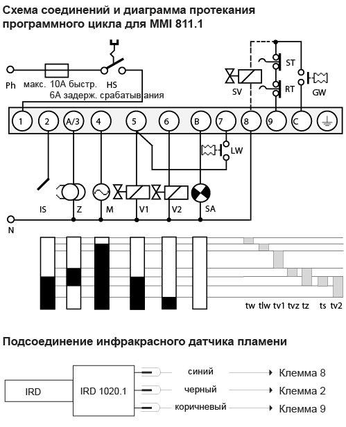 Вопрос: Какая мощность горелок поддерживается? Ответ: MMI 811.1 Mod.63 не имеет жестких ограничений по номинальной мощности горелки, так как основную нагрузку несут исполнительные механизмы (вентили, электродвигатели и т. п.). Главное — соблюдать предельные электрические параметры и рекомендации производителя.