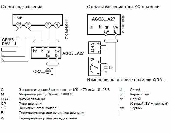 Контроль пламени: электрод ионизации или датчик QRA с блоком AGQ3..A27